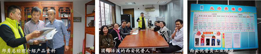 詹偉董事長的博學和循循善誘使會議多了幾分有趣和享受。同時,西安優(yōu)普這支團隊其蓬勃的精神面貌、昂揚的工作斗志、嚴明整齊的團隊作風,給董事長一行留下了深刻的印象。相信西安優(yōu)普子公司在總經理邱勇的帶領下一定能夠創(chuàng)造更加輝煌的明天!