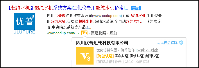 認(rèn)準(zhǔn)官網(wǎng)!四川優(yōu)普通過百度信譽(yù)資信認(rèn)證