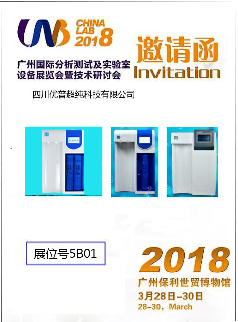 3月28-30日,優(yōu)普(展位號:5B01)將參加在廣州保利世貿(mào)博覽館主辦的廣州國際分析測試及實驗室設(shè)備展覽會暨技術(shù)研討會(CHINA LAB 2018)。