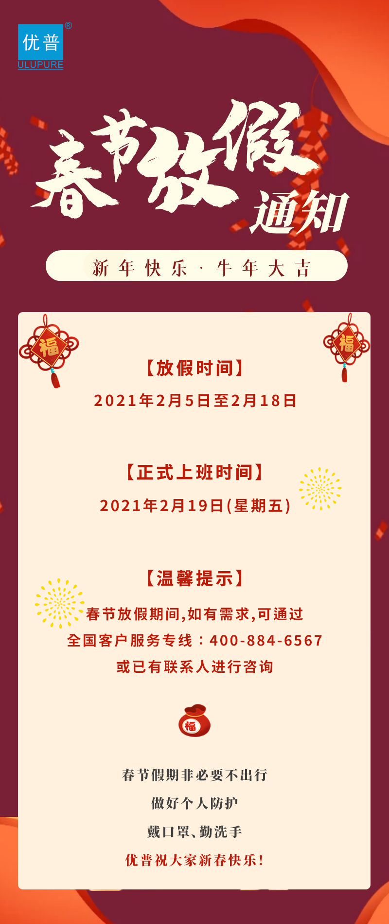 四川優(yōu)普超純科技有限公司2021春節(jié)放假通知。