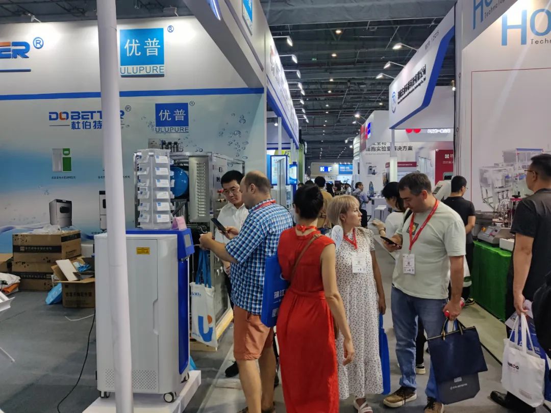 優(yōu)普展位上吸引了眾多客戶駐足,人氣火爆,不僅國(guó)內(nèi)客戶參觀咨詢,更是吸引眾多國(guó)外客戶前來參觀,優(yōu)普?qǐng)F(tuán)隊(duì)為來訪客戶講解新機(jī)型,與客戶共同探討實(shí)驗(yàn)室純水領(lǐng)域技術(shù)與應(yīng)用。