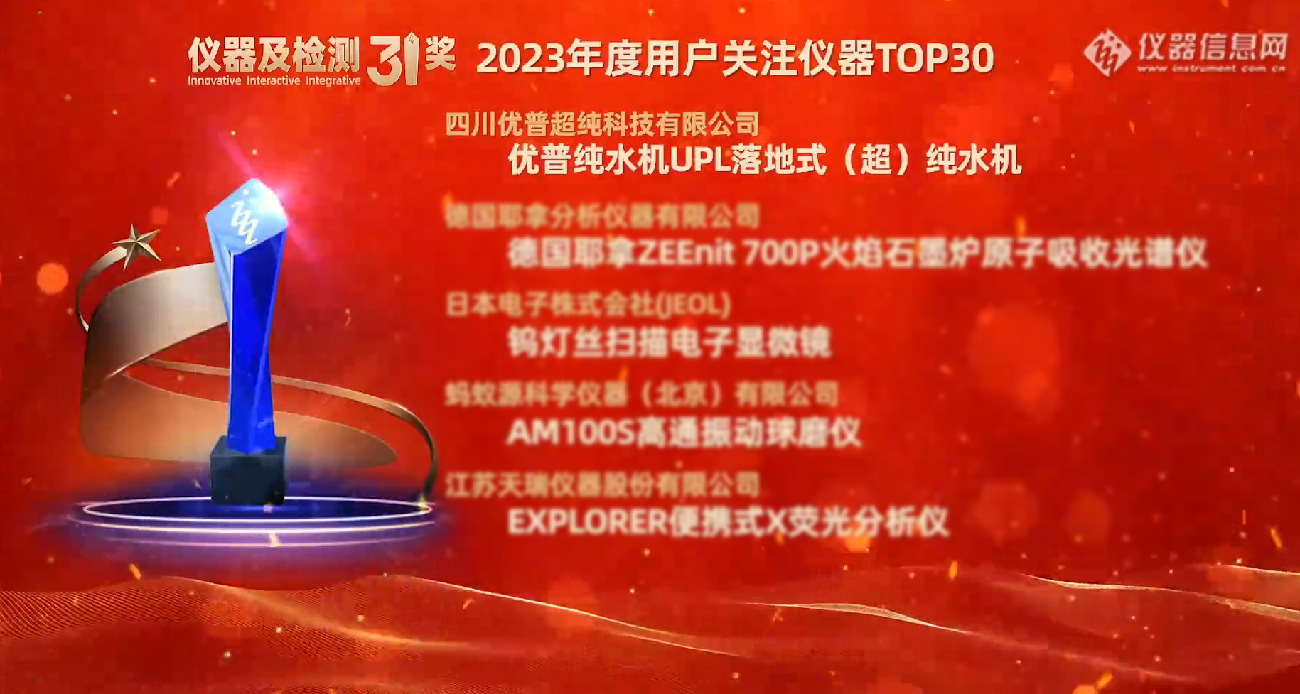 優(yōu)普UPL超純水機(jī)榮獲“2023年度用戶關(guān)注儀器獎”