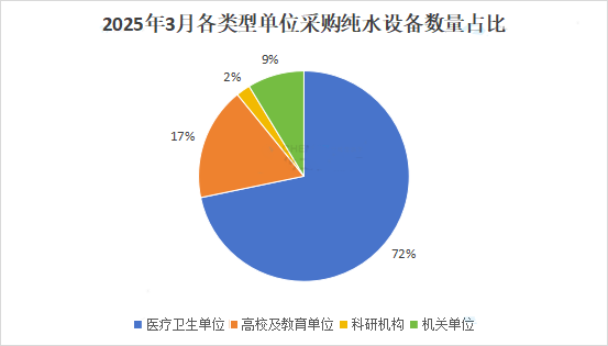 從純水設(shè)備采購單位來看:3月采購需求主要集中在醫(yī)療衛(wèi)生單位上