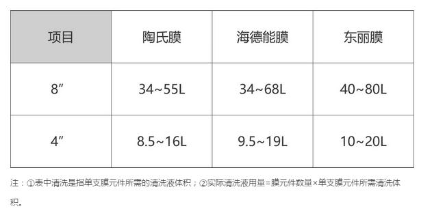 (2)膜清洗液體積
