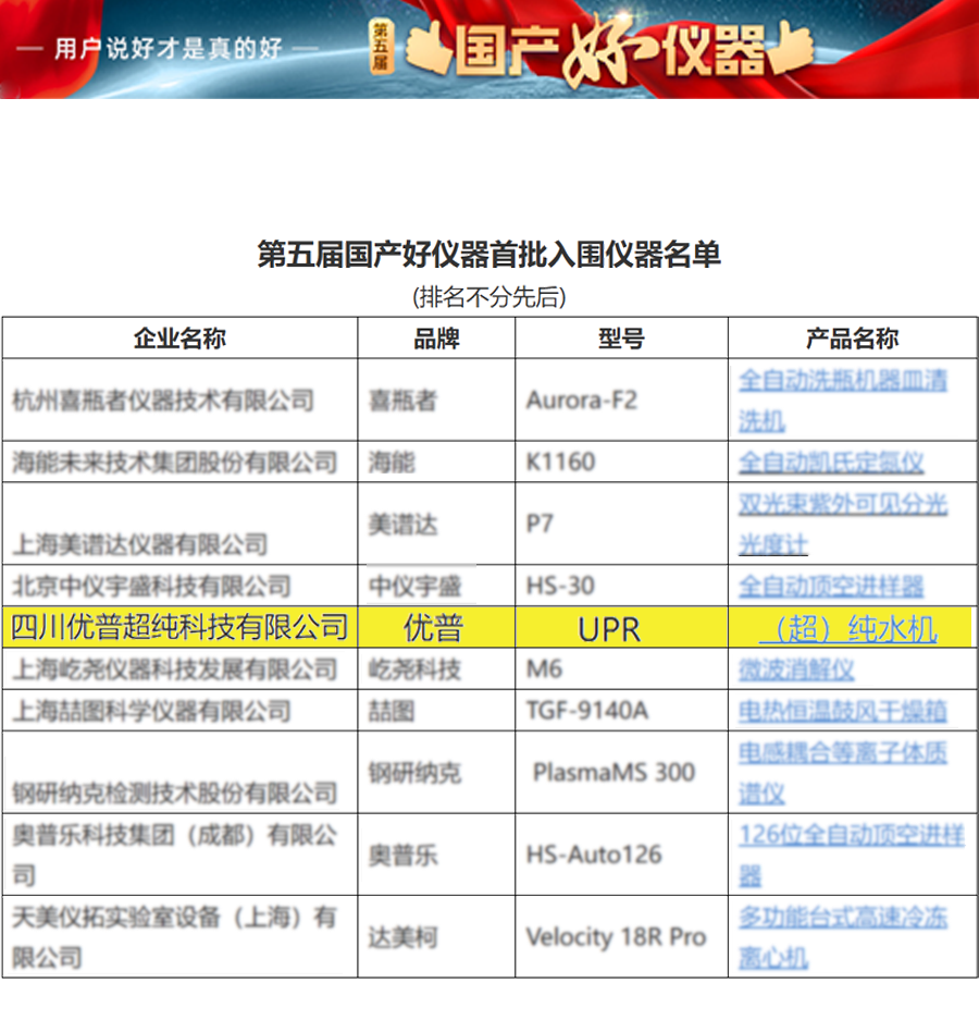 優(yōu)普產(chǎn)品再次入選國(guó)產(chǎn)好儀器
