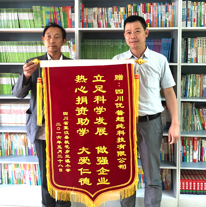 四川優(yōu)普超純科技有限公司(以下簡稱“優(yōu)普”)捐建的首個“優(yōu)普鄉(xiāng)村小學(xué)愛心圖書館”,在此舉行了簡單的落成儀式。