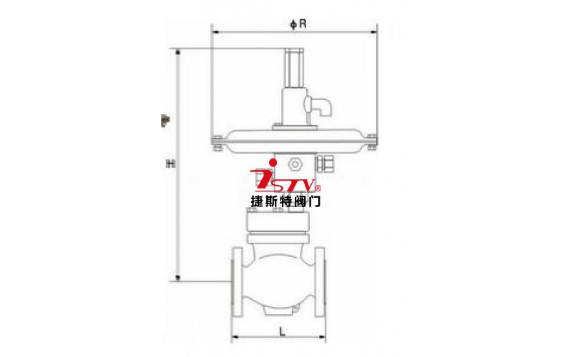 該閥采用大膜片執(zhí)行機構輸出力大穩(wěn)定,對壓力流量微小變化極其敏感,控制精度很高,閥芯采用單座流開(高進低出)設計,在閥蓋處(和閥體連接處)安裝有平衡膜片(起到閥前壓力平衡,消除不平衡力)閥后壓力經(jīng)取壓管進入薄膜執(zhí)行機構,同薄膜執(zhí)行機構調節(jié)彈簧相比較,壓力達不到設定值(調節(jié)壓縮執(zhí)行機構彈簧)閥后壓力則變大,反之則變小。